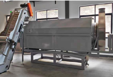 作業原理:茶葉經過提升機進入連續滾筒式提香機,通過滾筒中的遠紅外陶瓷加熱板及導葉筋進行受熱連續提香。